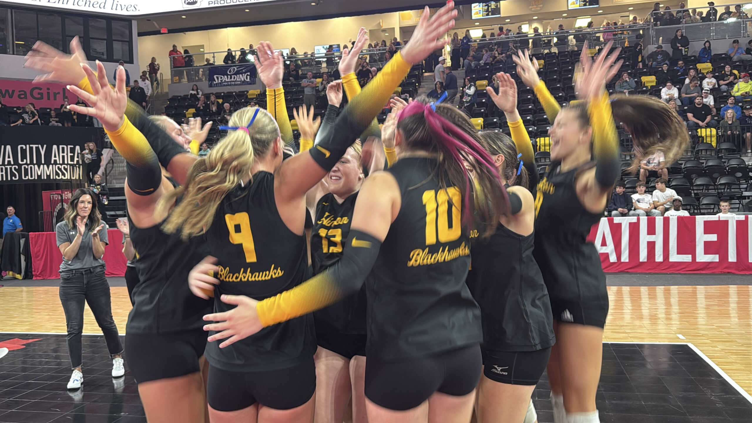 Hinton volleyball returns to Coralville with four-set win over Iowa City Regina